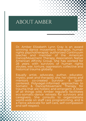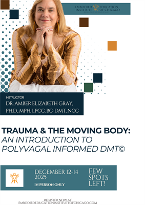 This 15-hour introductory course provides theoretical, scientific, and contemplative rationale for the use of dance movement therapy with survivors of trauma and as a measure of protection, self care, and increased compassion. The emphasis of this class is client-therapist co-regulation as both a self-care and a clinical skill that supports DMT’s ability to support clients through their own post trauma restorative process without re-traumatization. Drawing from a contemplative human rights framework and Polyvagal Theory, empowerment and developing a reciprocal alliance are themes of this course. This class also provides participants with a practical introduction and overview to using DMT in work with survivors of trauma, as well as for therapists’ own resilience and well-being. The course teaches DMT practices to support relative safety and stability in the reciprocal therapeutic relationship. A contemporary, evidenced-based phasic approach to working with complex trauma provides the foundation for theoretical material.